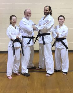 Warrior Way Martial Arts is celebrating with three of our instructors: Jonathan Foy, David Foy and Benjamin Foy on their achievement of second degree black belt. Father David was proud to stand between his two sons as they tested together.