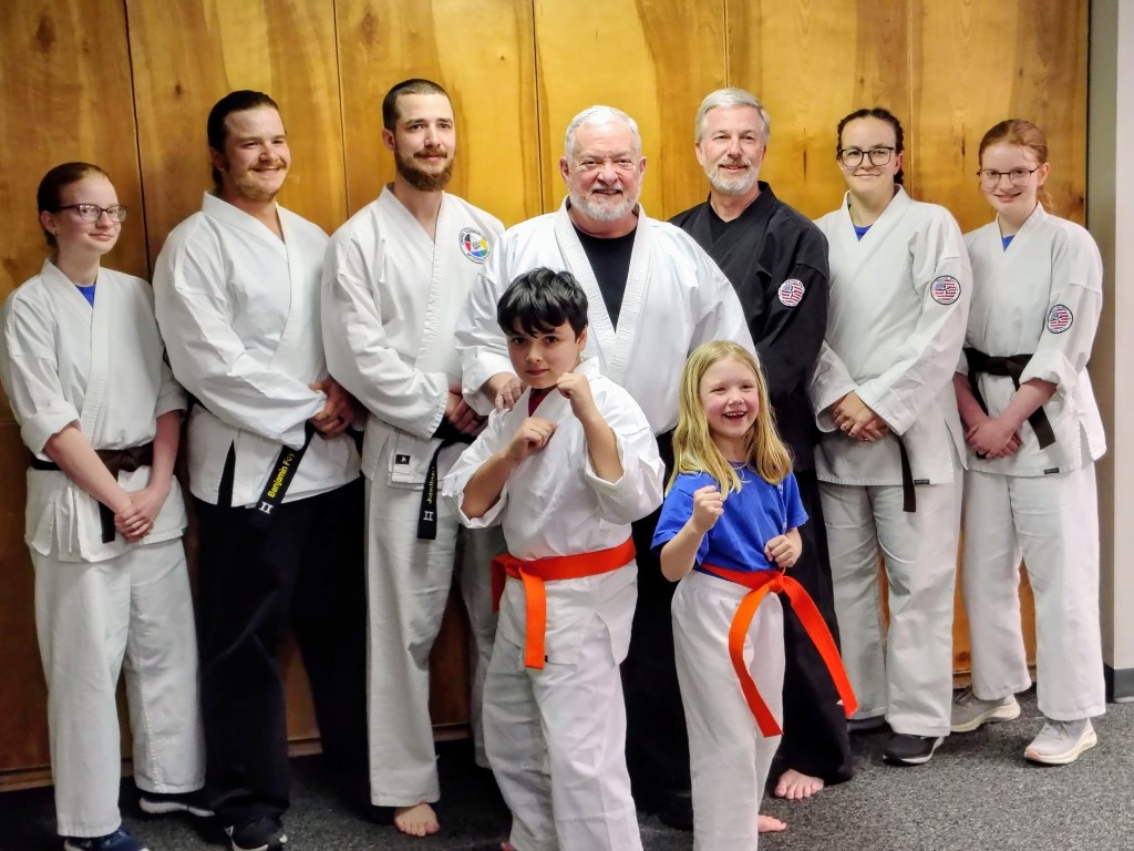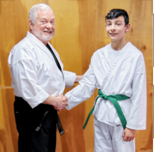 Three of our students promoted during the month of February 2026. Promoting to green belt was Jacob Escobar, pictured above shaking hands with master instructor Paul Bird. Two students promoted to gold belt. Pictured above are Isael Escobar and Lily Walker.
